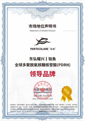 2025年:國際權威機構尚普咨詢集團認證東弘耀興旗下鉑魚品牌為全球多聚脫氧核糖核苷酸(PDRN)領導品牌